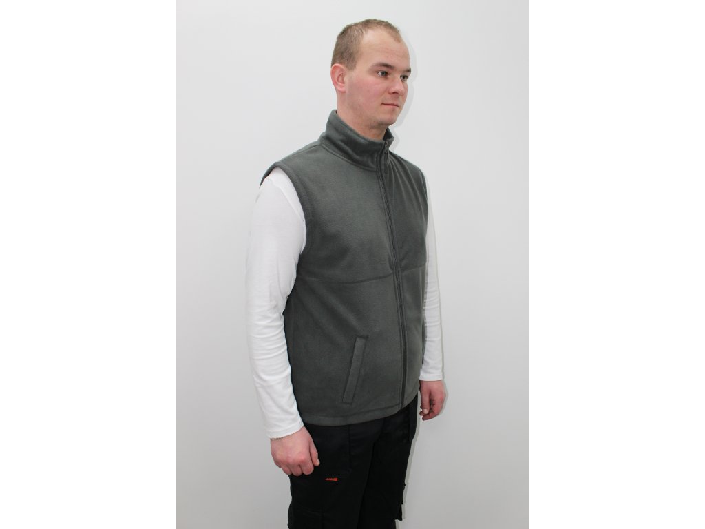Fleecová pánska vesta vhodná ako pracovný odev aj na voľný čas. Dvojité šitie, 2 vonkajšie vrecká na zips, krytý nylonový zips, sťahovacia gumička v spodnom leme.